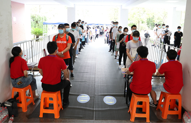 當(dāng)三位一體測試遇上疫情防控,除了緊張的考試氣氛外,學(xué)校大力加強了防控措施。學(xué)校利用隔離設(shè)施專門開辟了候考與考試場地,實行單向通行,安排了工作人員和志愿者為考生服務(wù)?忌谶M入校門時都要檢查健康表和測量體溫,進校口和考試區(qū)域都安排了經(jīng)驗豐富的防控醫(yī)生處理發(fā)熱考生、體溫異常者復(fù)檢等特殊情況。