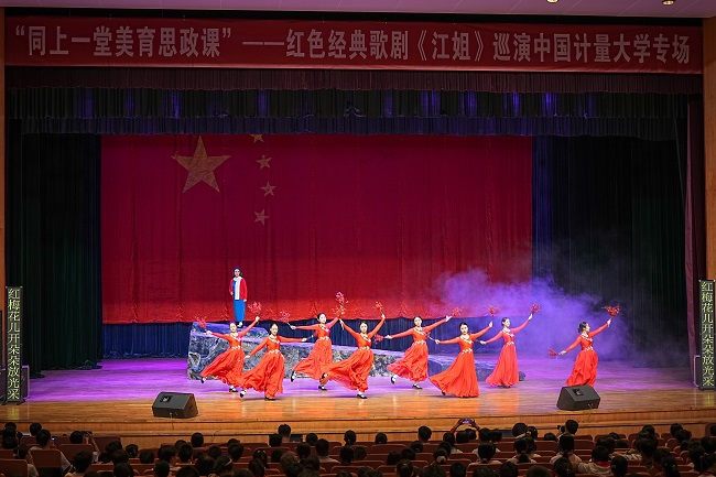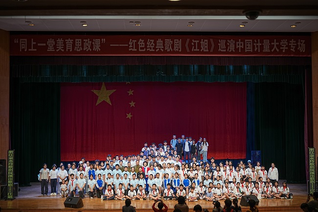 “紅巖上紅梅開,千里冰霜腳下踩……”當激昂的旋律在中國計量大學嘉量大會堂響起,觀演學生眼眶泛紅。9月25日,由中共浙江省委宣傳部、浙江省教育廳主辦,中國計量大學承辦的“同上一堂美育思政課”——紅色經(jīng)典歌劇《江姐》巡演專場震撼上演。來自杭州市錢塘區(qū)的中小學生代表與中國計量大學新生1000余人,在藝術浸潤中共同觸摸信仰的溫度。