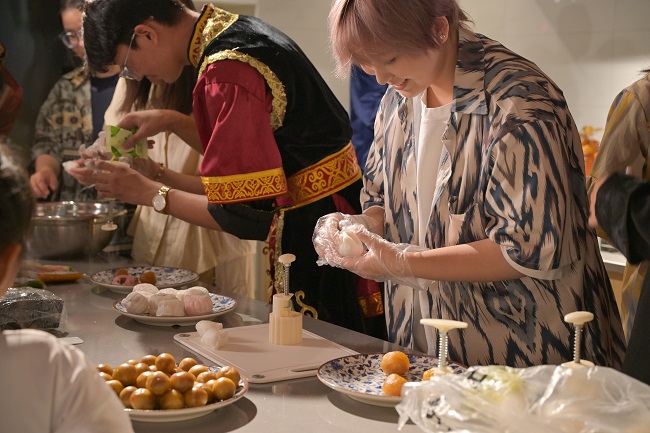 “雙節(jié)同慶”的溫情里,“表白”更添暖意!傲啃【邸惫蚕韽N房里,人文與外語學院學生會組織多民族學子圍在一起,揉面、包餡、壓模,共同制作月餅,讓民族情與愛國情在美味中交融。“和各族同學一起做月餅,就像和家人團圓,這是給祖國最好的祝福!”來自新疆的阿斯艷·艾拜卜拉同學捧著剛出爐的月餅說。