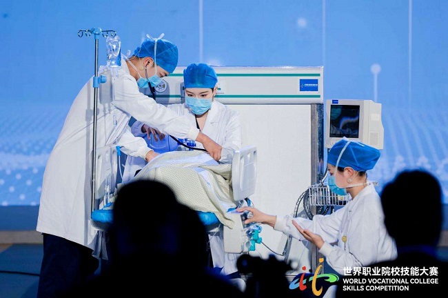 “2025年世界職業(yè)院校技能大賽啟動后,團隊開啟了‘白加黑’的攻堅模式。真實的診療場景,就是最好的實訓課堂。”團隊指導教師孔慧梅說。帶著這樣的理念,團隊打破臨床醫(yī)學與醫(yī)學檢驗技術的專業(yè)壁壘,組建跨學科團隊實現優(yōu)勢互補,讓技術更貼合臨床實際;依托學校附屬醫(yī)院(海棠醫(yī)院)的真實診療環(huán)境,開展全真模擬訓練,讓每一次操作都對接基層診室的真實場景,比如心電圖儀操作、經口氣管插管、體外心臟電復律等。同時,團隊研發(fā)創(chuàng)新融合智慧醫(yī)療系統(tǒng)與智能設備,為破解“老年糖尿病酮癥酸中毒”的救治難題提供了全新方案。這些創(chuàng)新成果,既瞄準了基層診療的“痛點”,更打通了“競賽技能—臨床實踐—健康服務”的轉化通道。