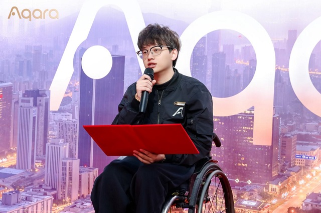 在現(xiàn)場(chǎng)活動(dòng)中,Aqara Space杭州臨安旗艦店負(fù)責(zé)人、00后的鄭博文坐著輪椅登臺(tái),分享了他的切身經(jīng)歷與感悟。“正因?yàn)槲夷贻p,我更懂我們對(duì)未來(lái)生活的渴望;也正因?yàn)檫@張輪椅,我比任何人都更深刻地理解,一個(gè)真正智能、無(wú)障礙的家,意味著什么。”作為杭州市殘聯(lián)十大青年企業(yè)家,長(zhǎng)期推動(dòng)無(wú)障礙環(huán)境建設(shè),對(duì)他而言,“空間智能”不是炫酷的標(biāo)簽,而是開燈關(guān)燈間那份觸手可及的獨(dú)立,是門窗開合時(shí)那份心安理得的自在!翱臻g智能不是選擇題,而是生活的必答題。”