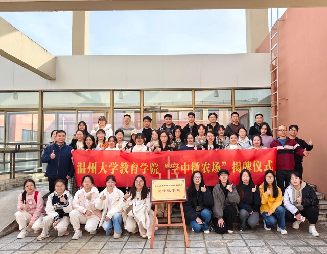 11月27日下午,溫州大學教育學院“空中微農場”勞動教育實踐基地揭牌儀式在學院空中走廊舉行。